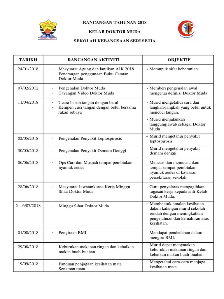 Rancangan Tahunan Kelab Doktor Muda Skup 2018 Sekolah Kebangsaan Ujong Pasir Jalan Ujong Pasir 75050 Melaka