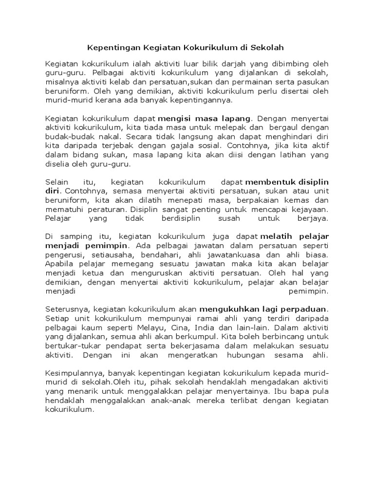 Kepentingan Kegiatan Kokurikulum Di Sekolah