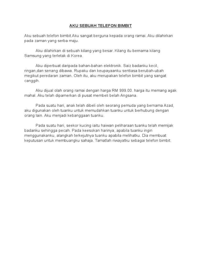Sudut Bm Cikgu Tan Karangan 12 Aku Sebuah Telefon Bimbit
