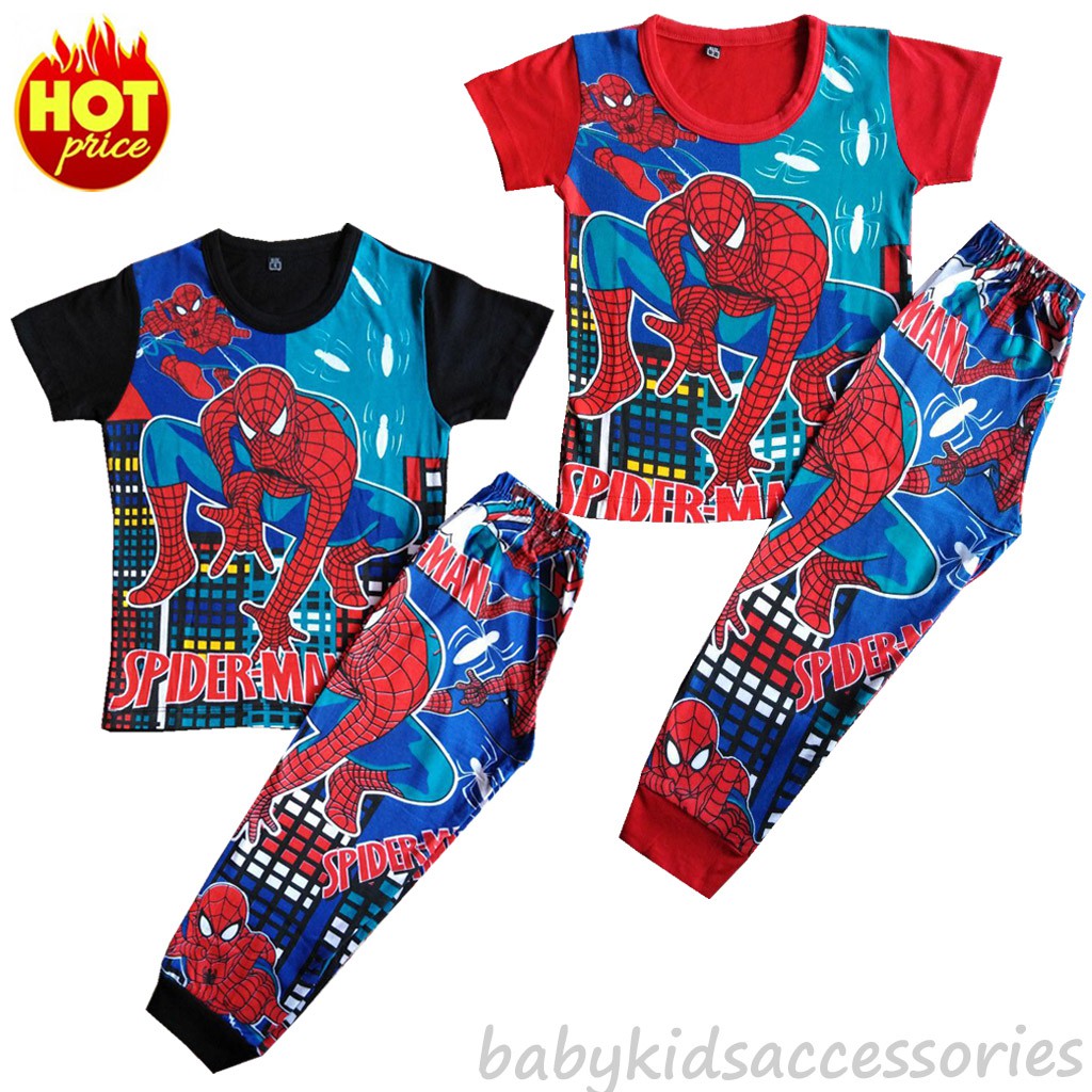 Pyjamas Cartoon Kids Boy Girl Clothing Sleepwear Set Cartoon Spider Superhero Didi Baju Tidur Kanak Kanak Lelaki Perempuan 1 6y Lazada