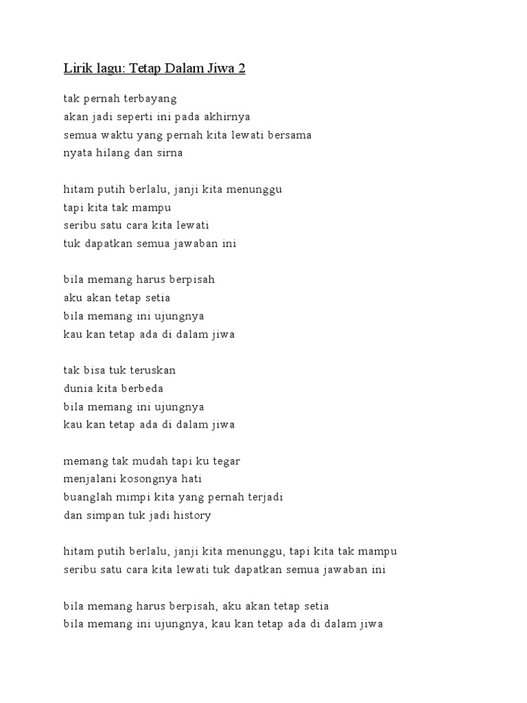 Lirik Lagu Tetap Dalam Jiwa 2