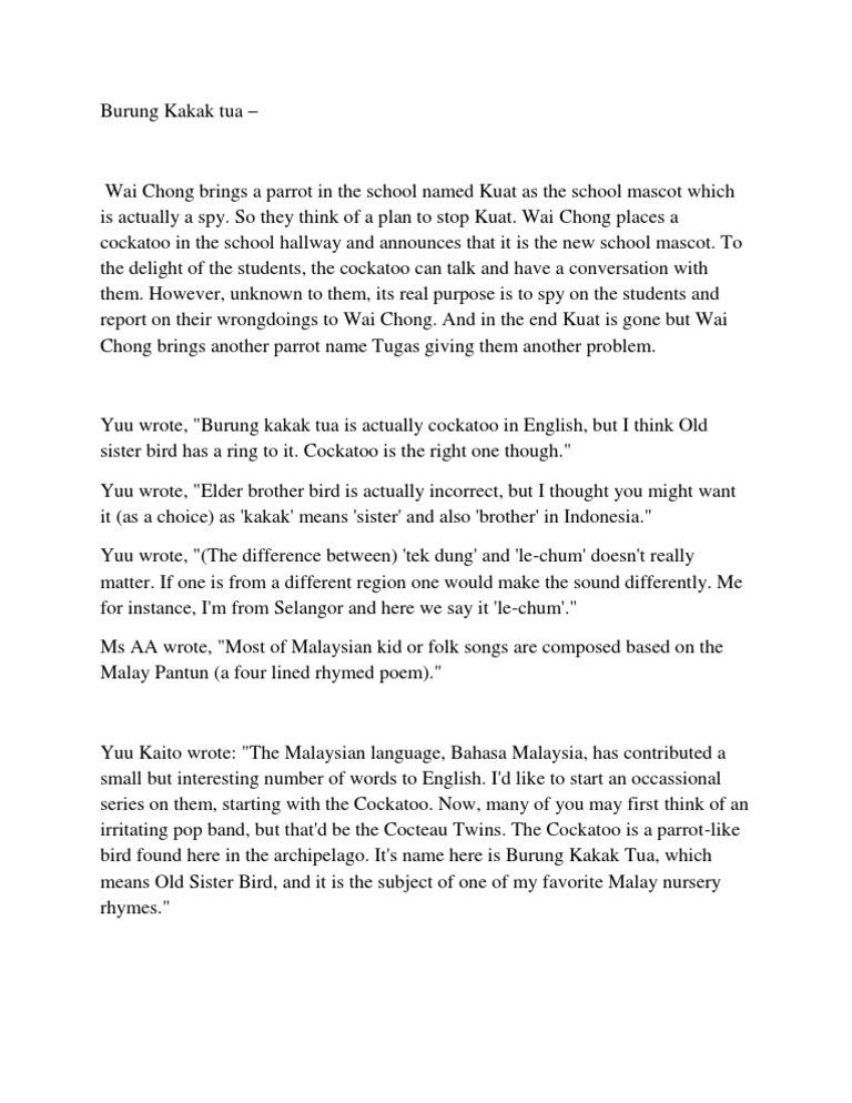Indonesian And English Children S Songs And Rhymes Burung Kakak Tua
