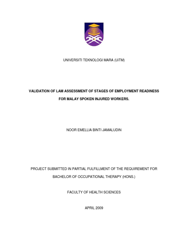 Validation Of Laser For Malay Spoken Injured Workers Emellia Psychological Evaluation Physical Therapy