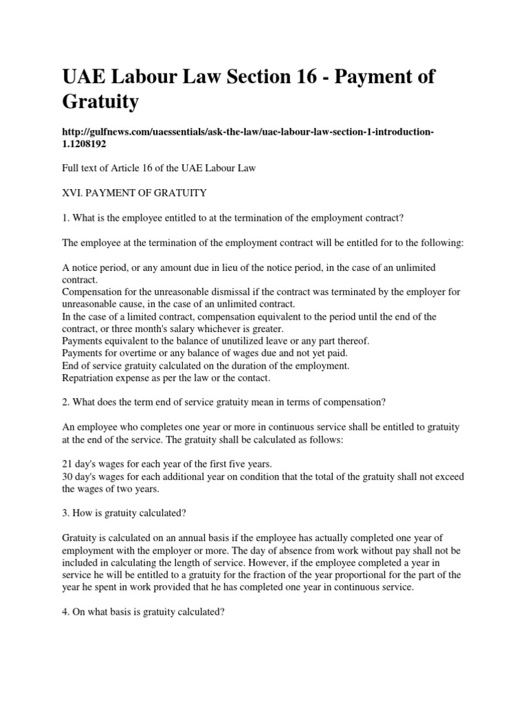 Uae Labour Law Section 16 Travel Visa Gratuity