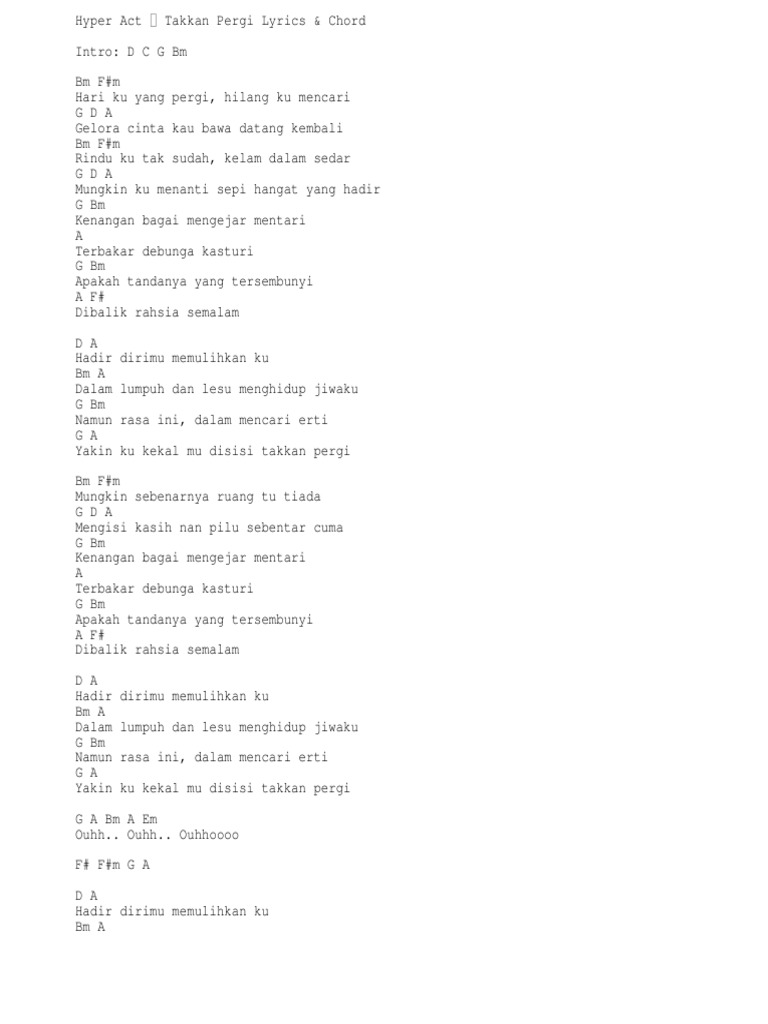 Hyper Act Takkan Pergi Lirik Koleksi Lirik Lagu Melayu Dan Inggeris