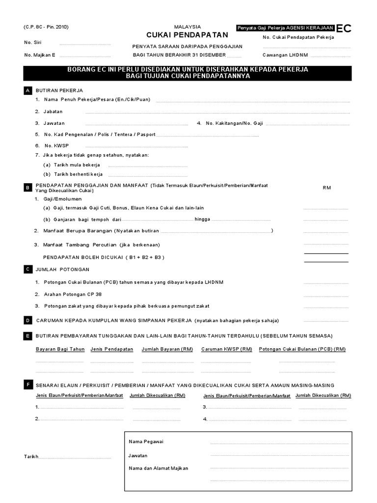 Borang Kosong Penyata Gaji Pekerja Agensi Kerajaan Ec
