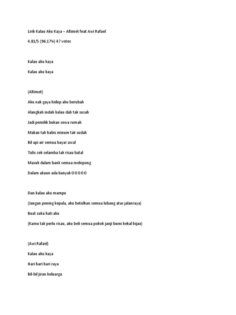 Lirik Lagu Altimet Feat Awi Rafael Kalau Aku Kaya Lirik De Lyrics