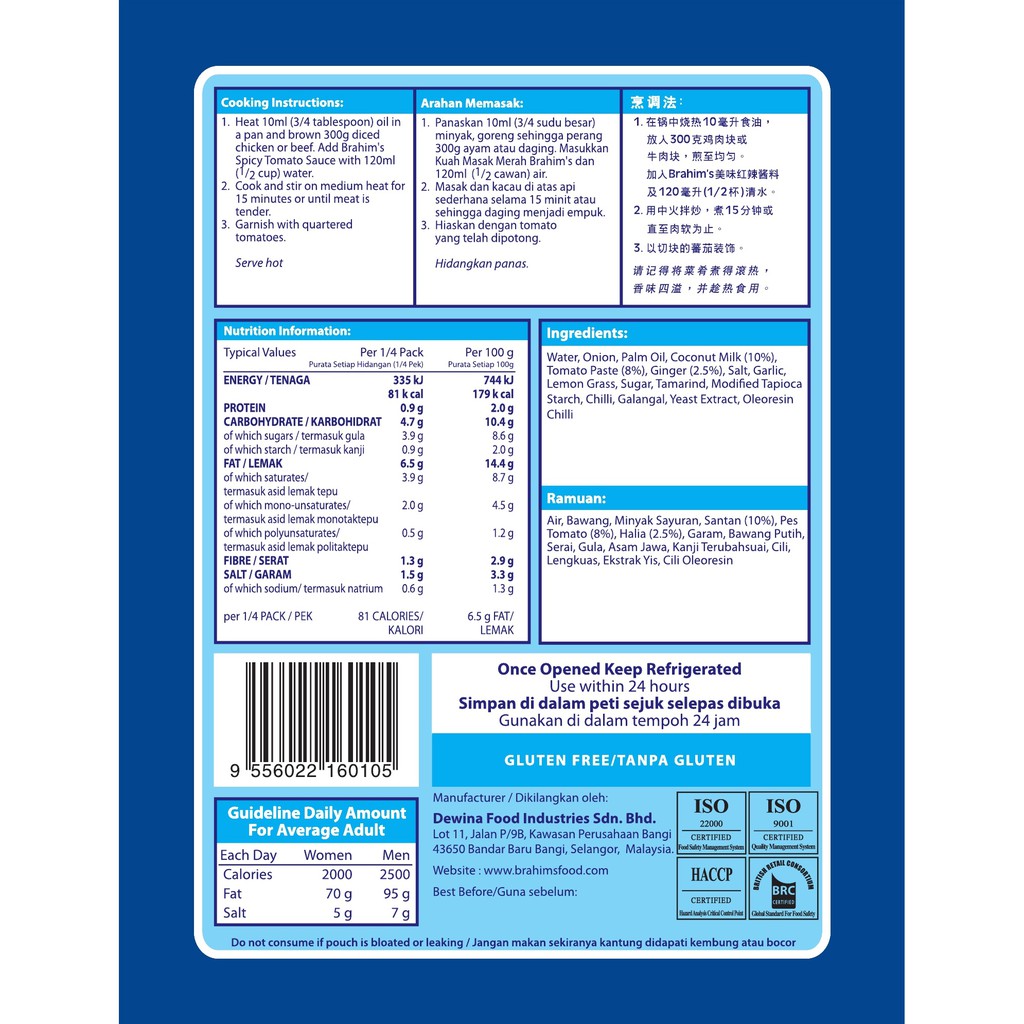 Brahim S Kuah Masak Merah Spicy Tomato Sauce Bis Brahim Brahims Travel Food Shopee Singapore