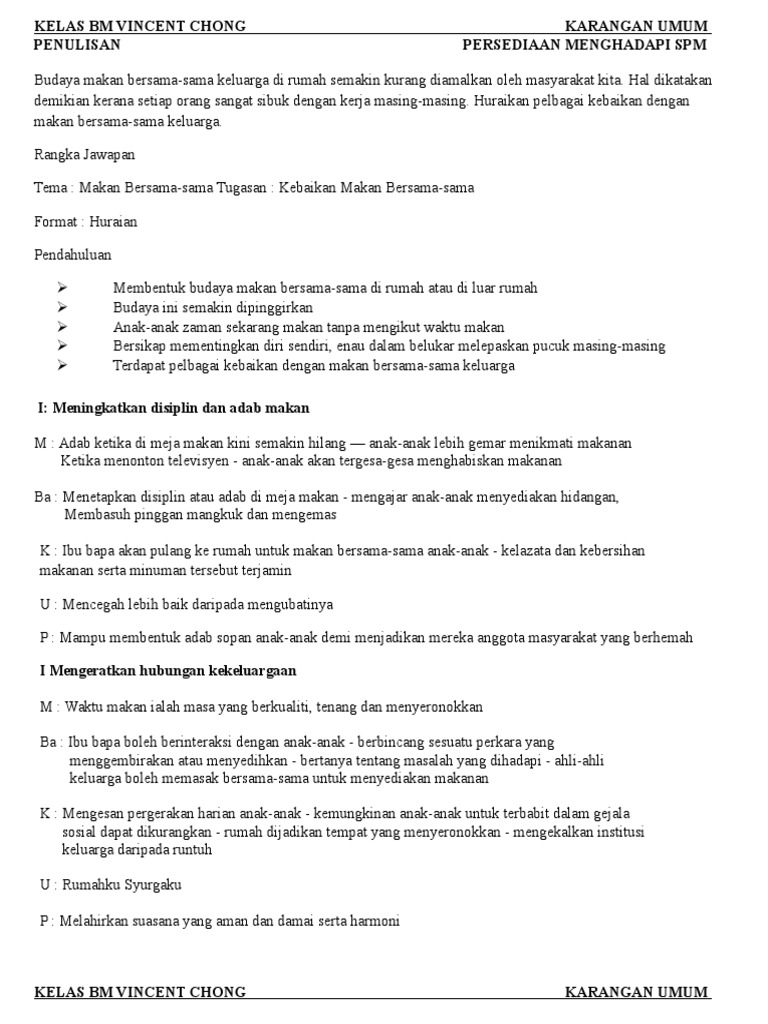 Karangan Umum Kebaikan Makan Bersama Keluarga Spm Docx Docx