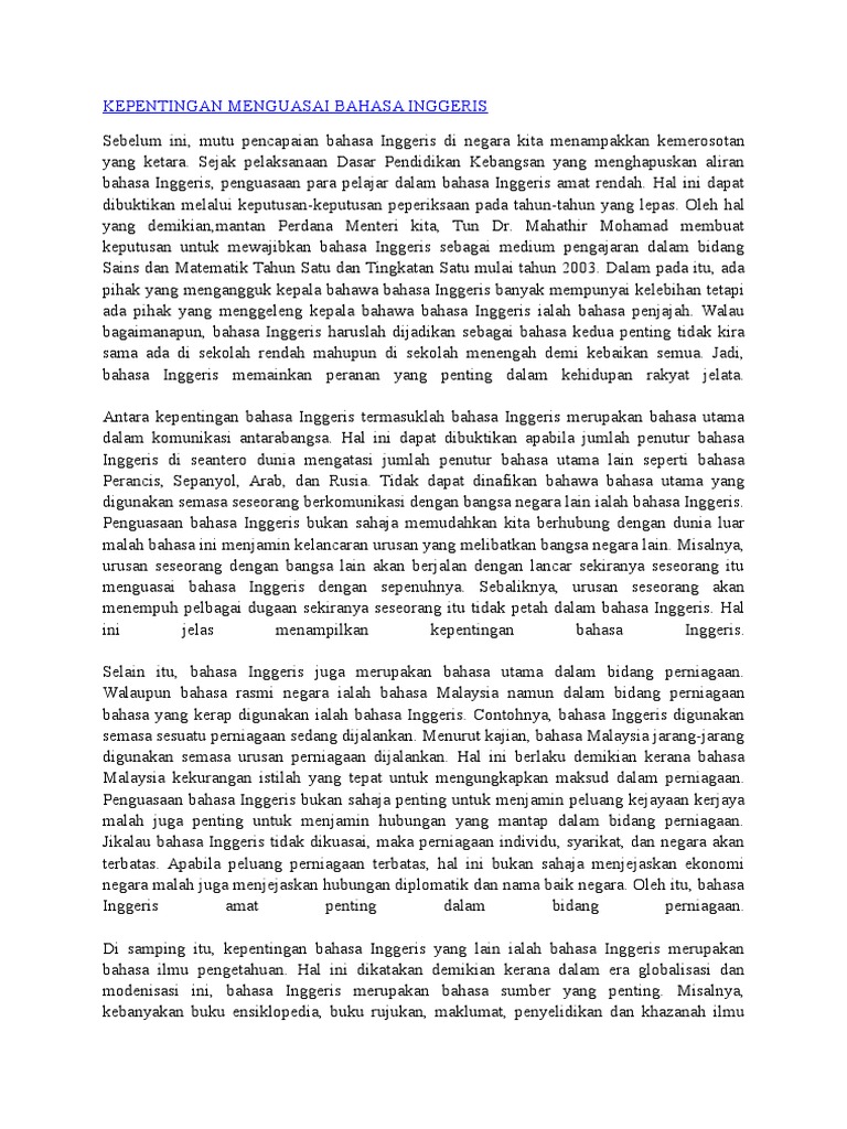 Contoh Karangan Kepentingan Menguasai Bahasa Asing Seperti Bahasa Inggeris