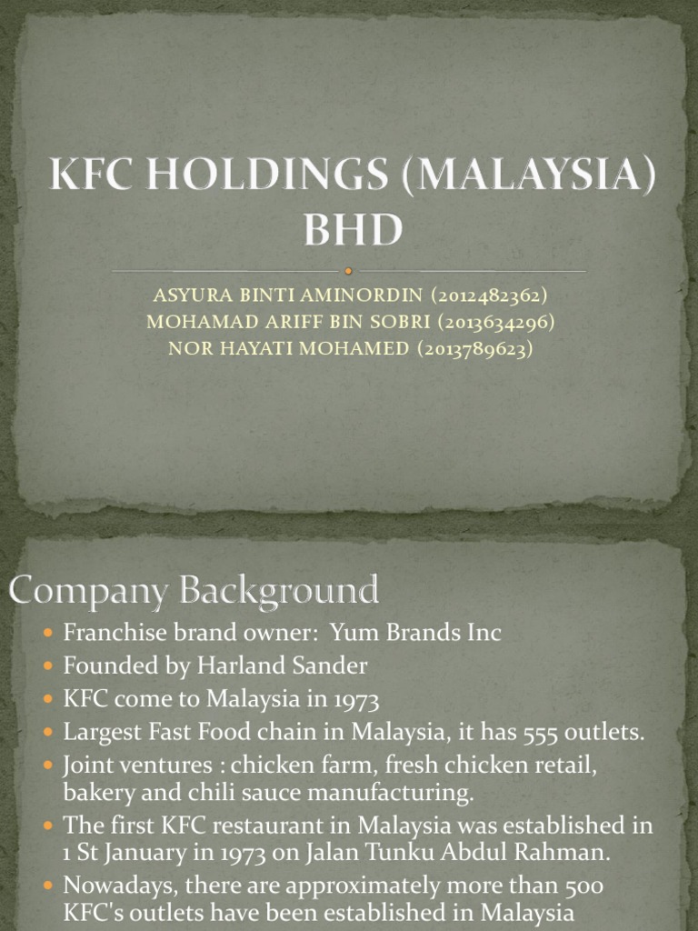 Kfc Holdings Malaysia Bhd 1 Fast Food Restaurants Fast Food
