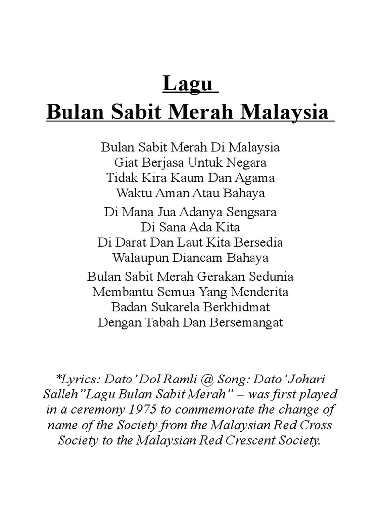 Pdf Lagu Persatuan Bulan Sabit Merah Malaysia Toushiro Chang Academia Edu