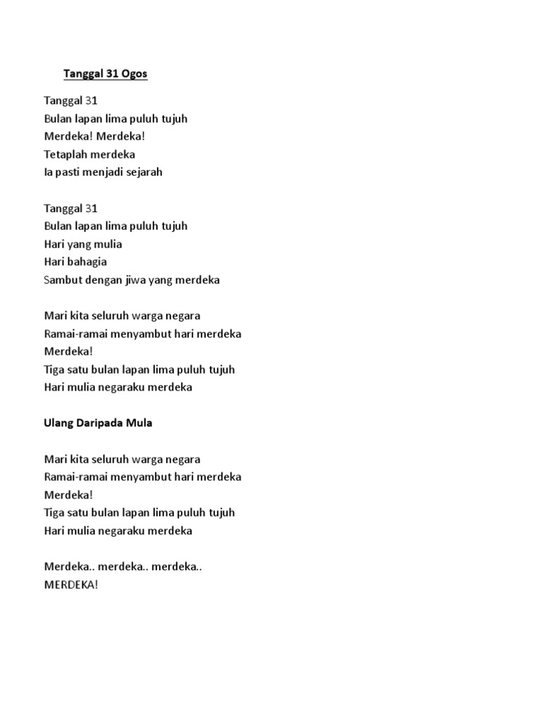 Lirik Lagu Tanggal 31 Ogos Sudirman