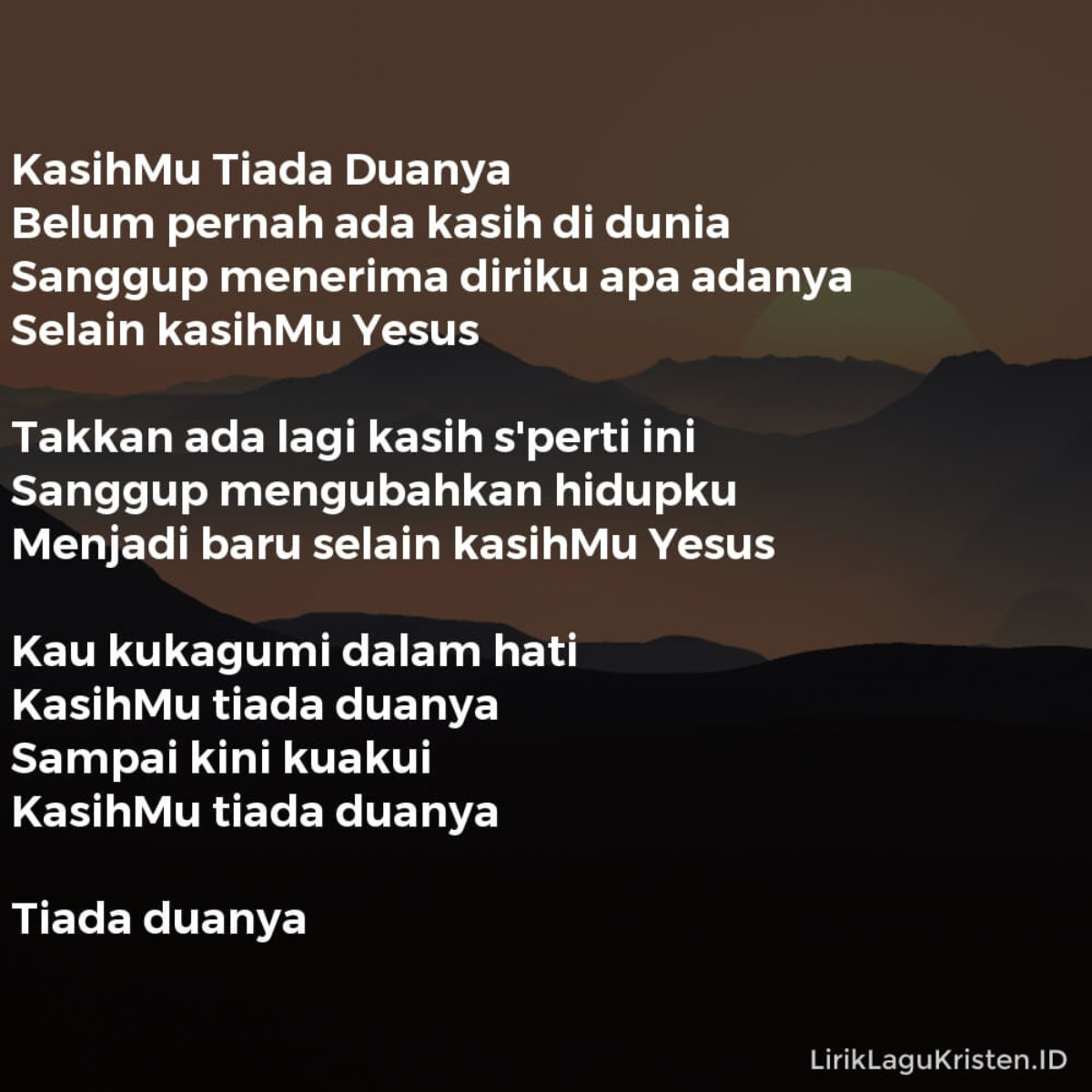 Kasihmu Tiada Duanya Lirik Lagu Kristen