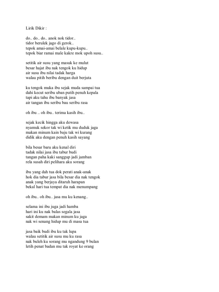 Lirik Dikir Lagu Untuk Ibu