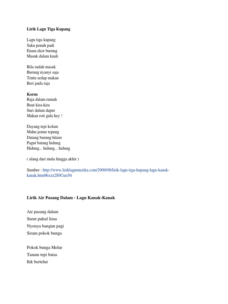 Lagu Tiga Kupang Lirik Lagu Kanak Kanak