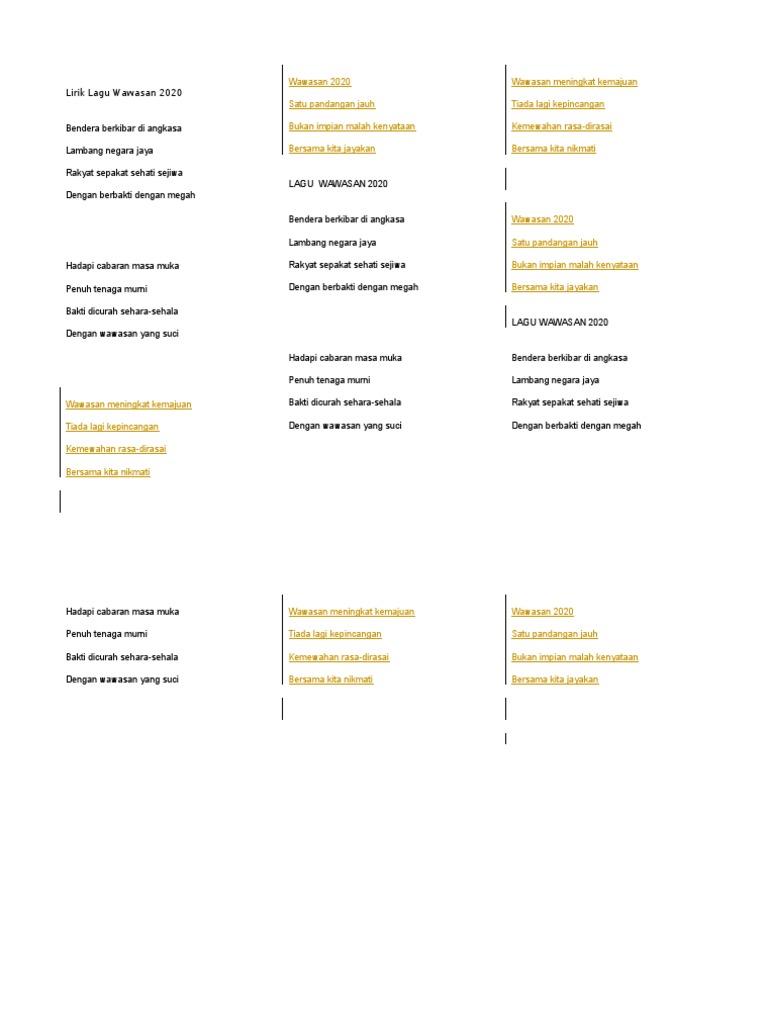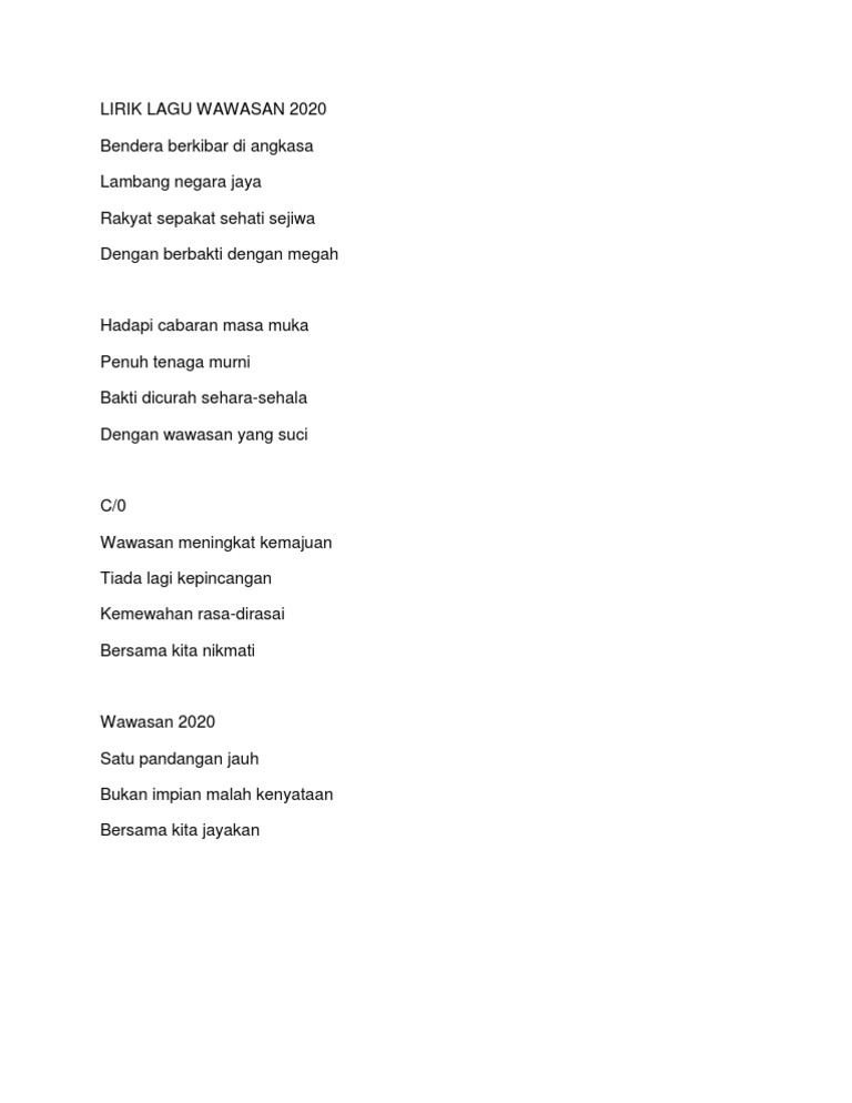 Lirik Lagu Wawasan 2020 Docx