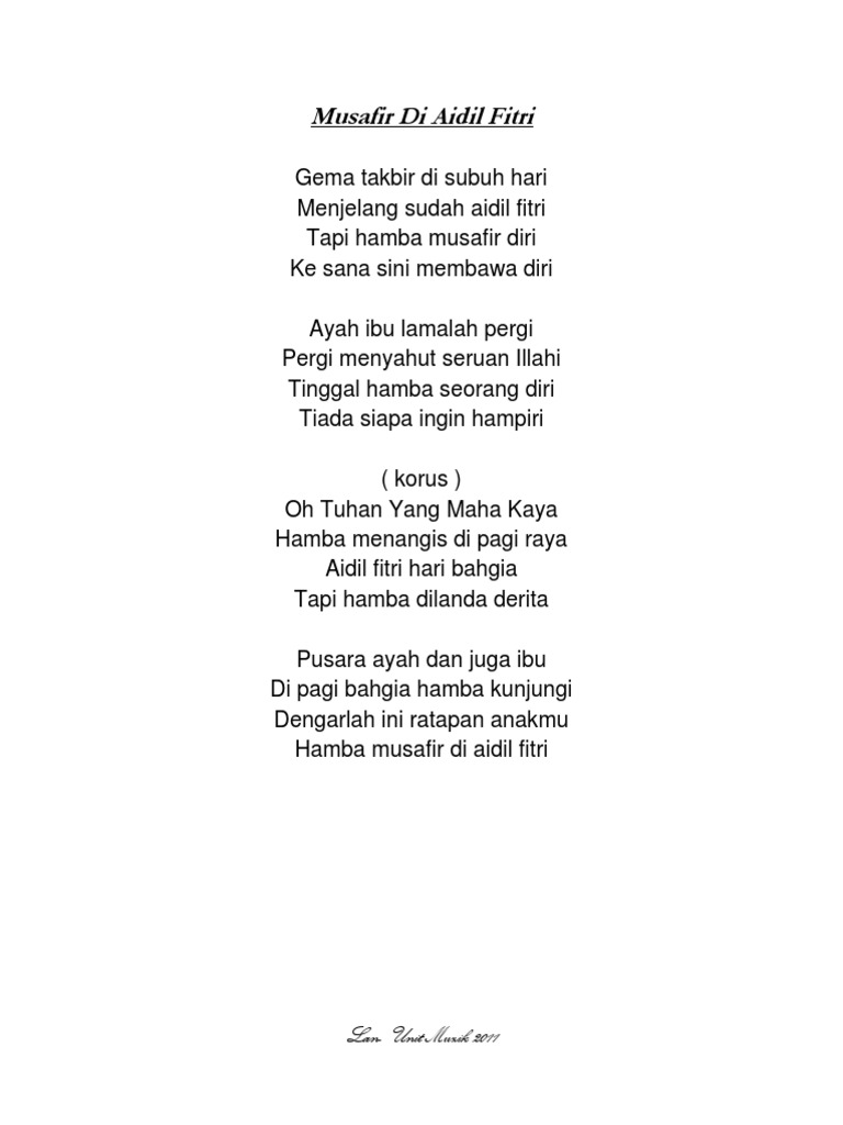 Musafir Di Aidilfitri Lyrics And Music By S Jibeng Arranged By Nadz4376