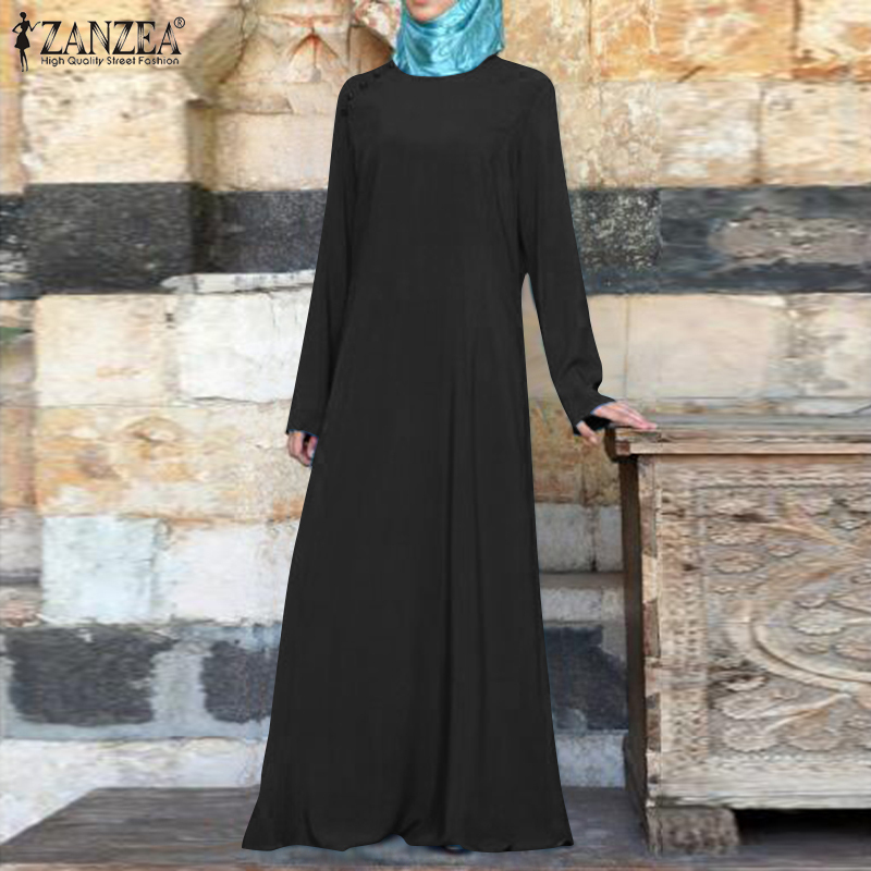 Zanzea Wanita Muslimah Wanita Muslim Kasual Lengan Panjang Penuh Panjang Butang Ke Bawah Maxi Baju Pakaian Lazada