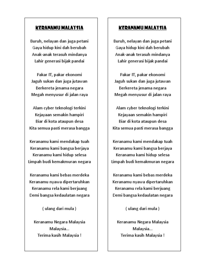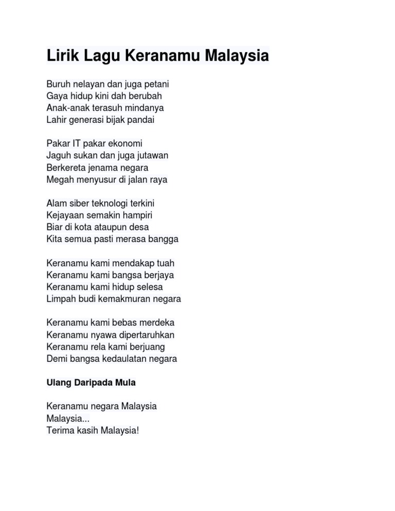 Lirik Lagu Keranamu Malaysia