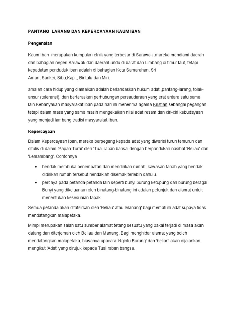 Pantang Larang Dan Kepercayaan Kaum Iban