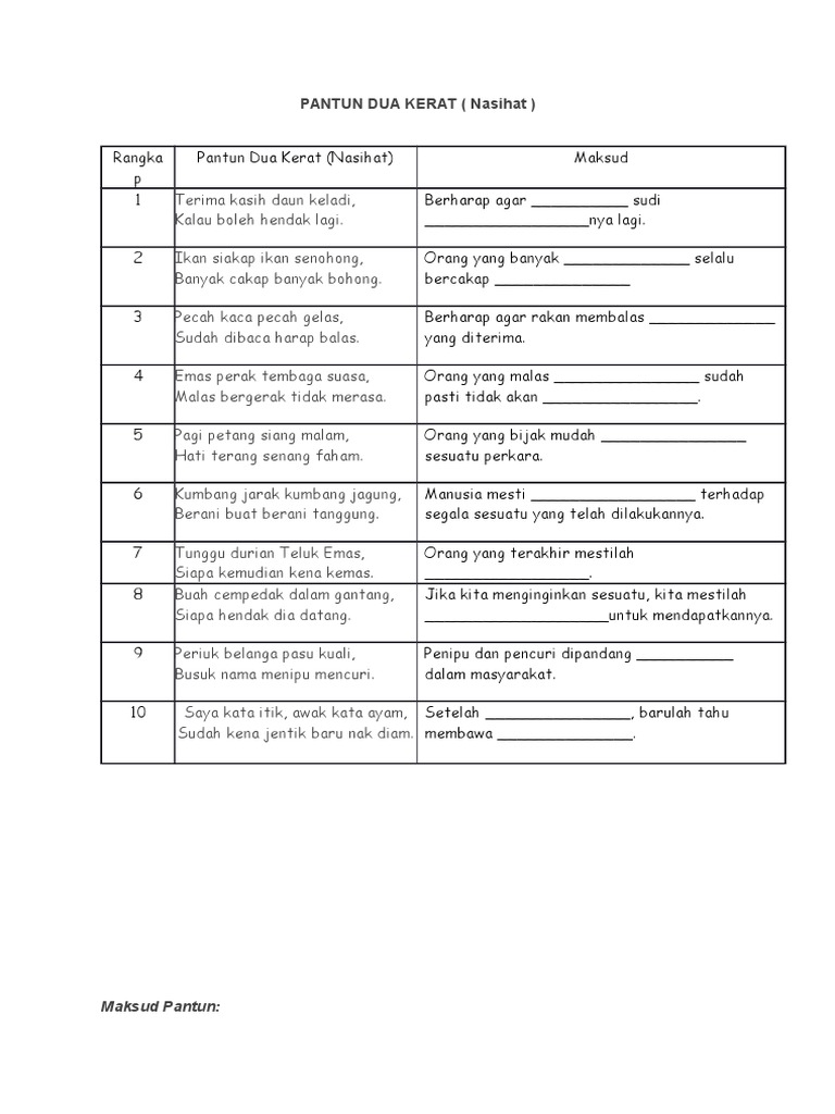 Bm Phong Latihan Pantun Nasihat