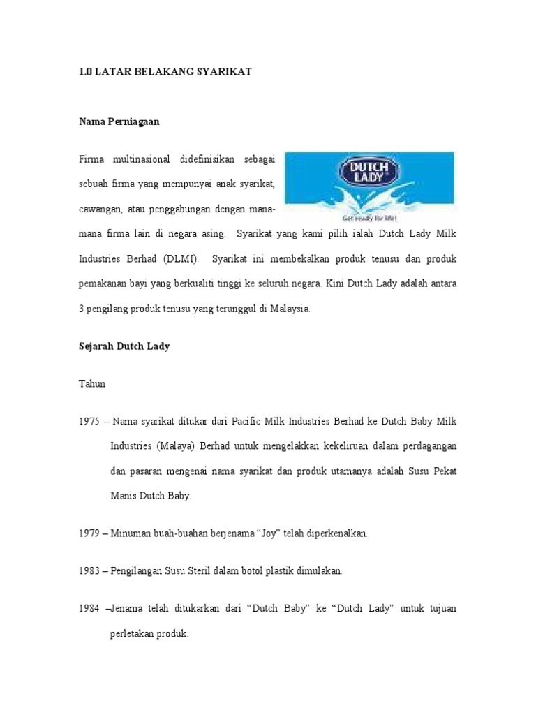 Pengenalan Syarikat Dutch Lady Pptx Kumpulan 1 Syarikat Dutch Lady Milk Industries Berhad Bba 00489 Noor Arifah Binti Ahmad Bba 441 Nur Munirah Binti Course Hero