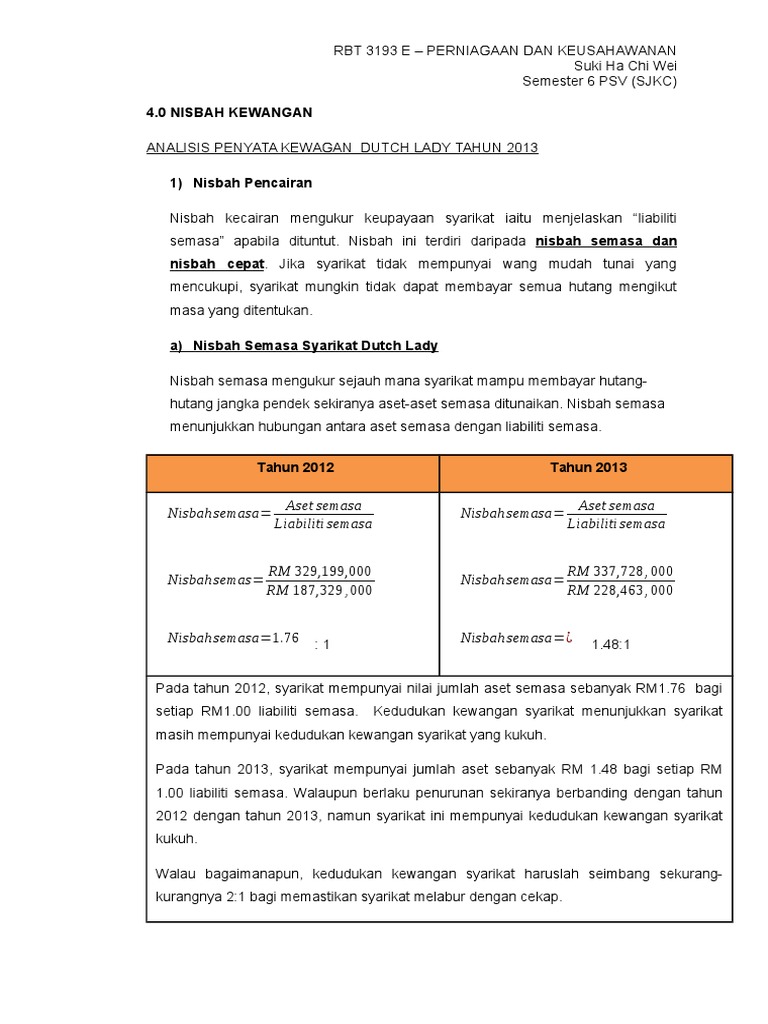 Penyata Kewangan Syarikat Dutch Lady
