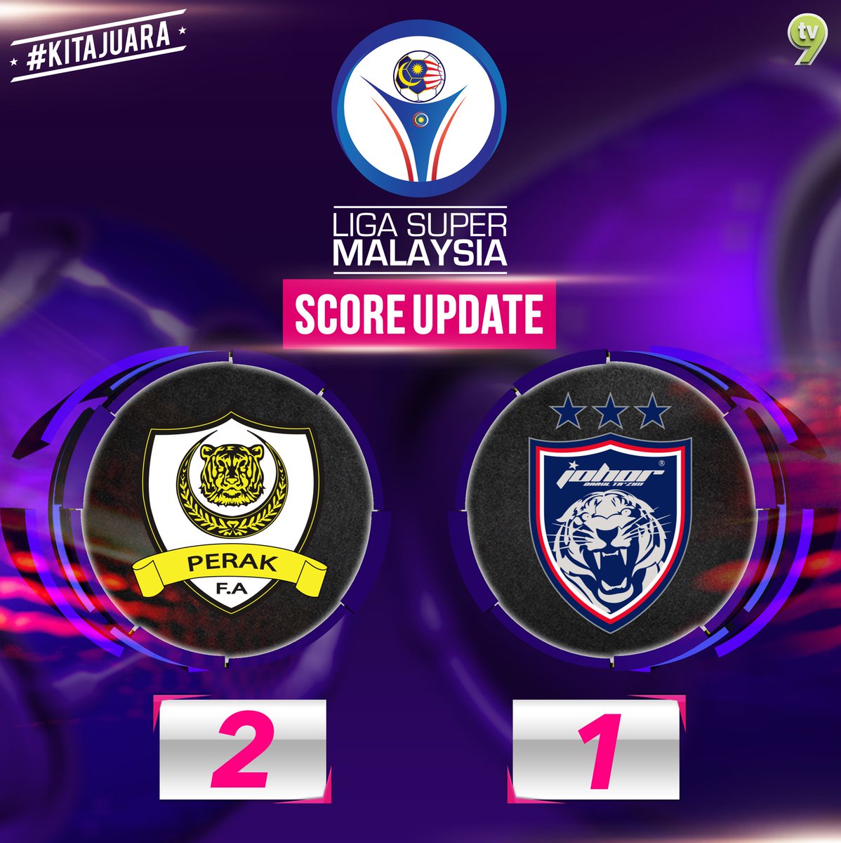Tv9 Malaysia A Twitter Perlawanan Liga Super Perak Vs Jdt Tamat Dengan Keputusan 2 1 Kemenangan Berpihak Pada Tuan Rumah Kitajuara