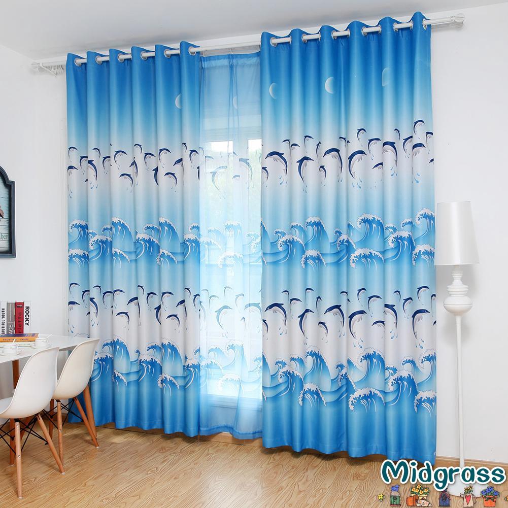 Mr Diy Cute Cartoon Dolphins Printing Blackout Shade Curtains Window Blinds Drapes Shopee Philippines