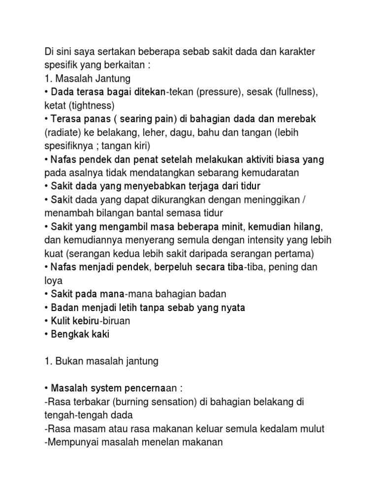 Jom Kongsi Pengalaman Pelbagai Punca Sakit Dada