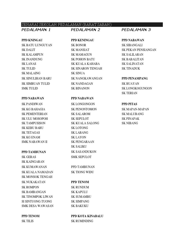 Senarai Sekolah Menengah Kategori Luar Bandar Dan Pedalaman Di Negeri Sabah