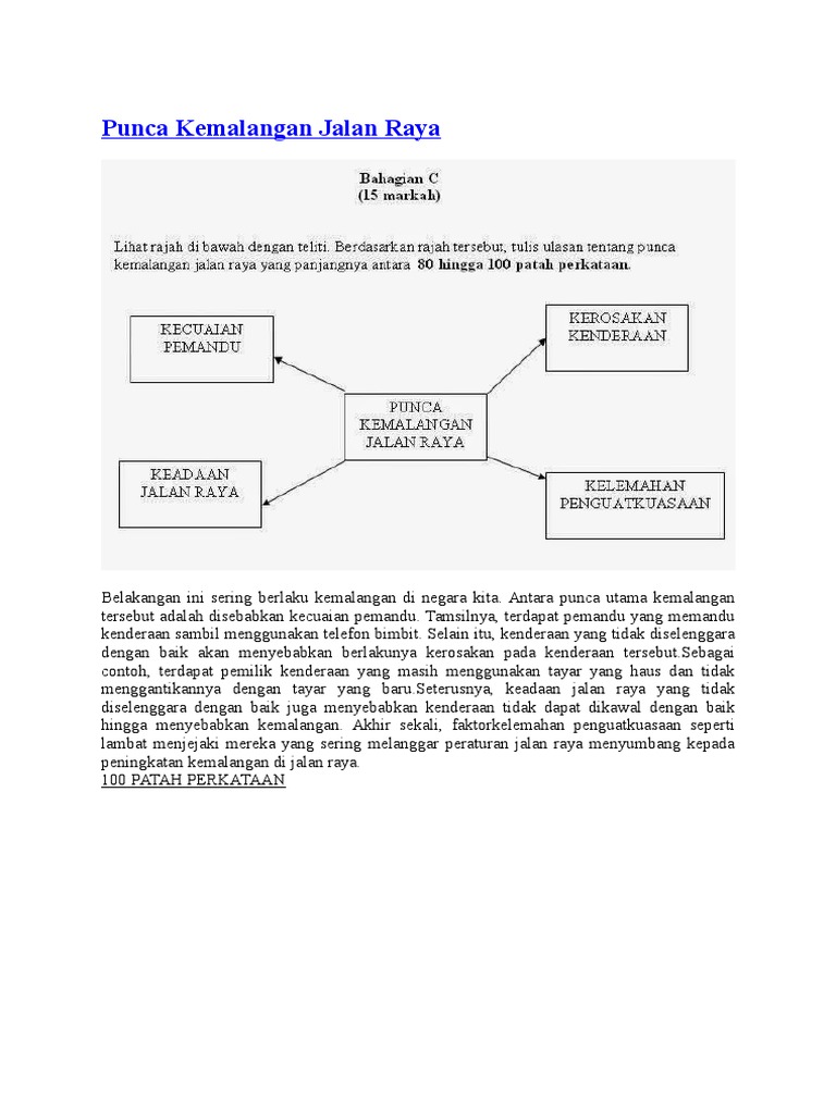 Mari Belajar Bahasa Melayu Karangan Ulasan Punca Kemalangan Jalan Raya